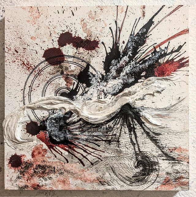 「逆綴りが見せた幻想」 制作者: 石井俊輝 制作年: 2025 サイズ: S3号(273×273mm) 使用画材: 木製パネル(シナベニヤ)、ジェッソ、アクリル絵の具、モデリングペースト 本作は、アクリル絵の具による”AZAYAKA”な抽象作品です。 「逆綴り」の言葉に潜むミステリアスな世界を表現しました。 27cmの正方形のサイズ感はどんな空間でも馴染みやすく、リビングや書斎、玄関など限られたスペースにも飾りやすい仕様です。画鋲1本で簡単に飾ることができるので、あなたのスタイルに合わせた展示を楽しんでいただけます。 ※作品に壁掛け用フックは付属しておりません。展示の際はイーゼルや専用金具をご利用ください。 ☆送料無料 ・作品の表面は独特の質感を持っていますので、お手入れの際には柔らかいブラシなどを使用していただくことをおすすめします。