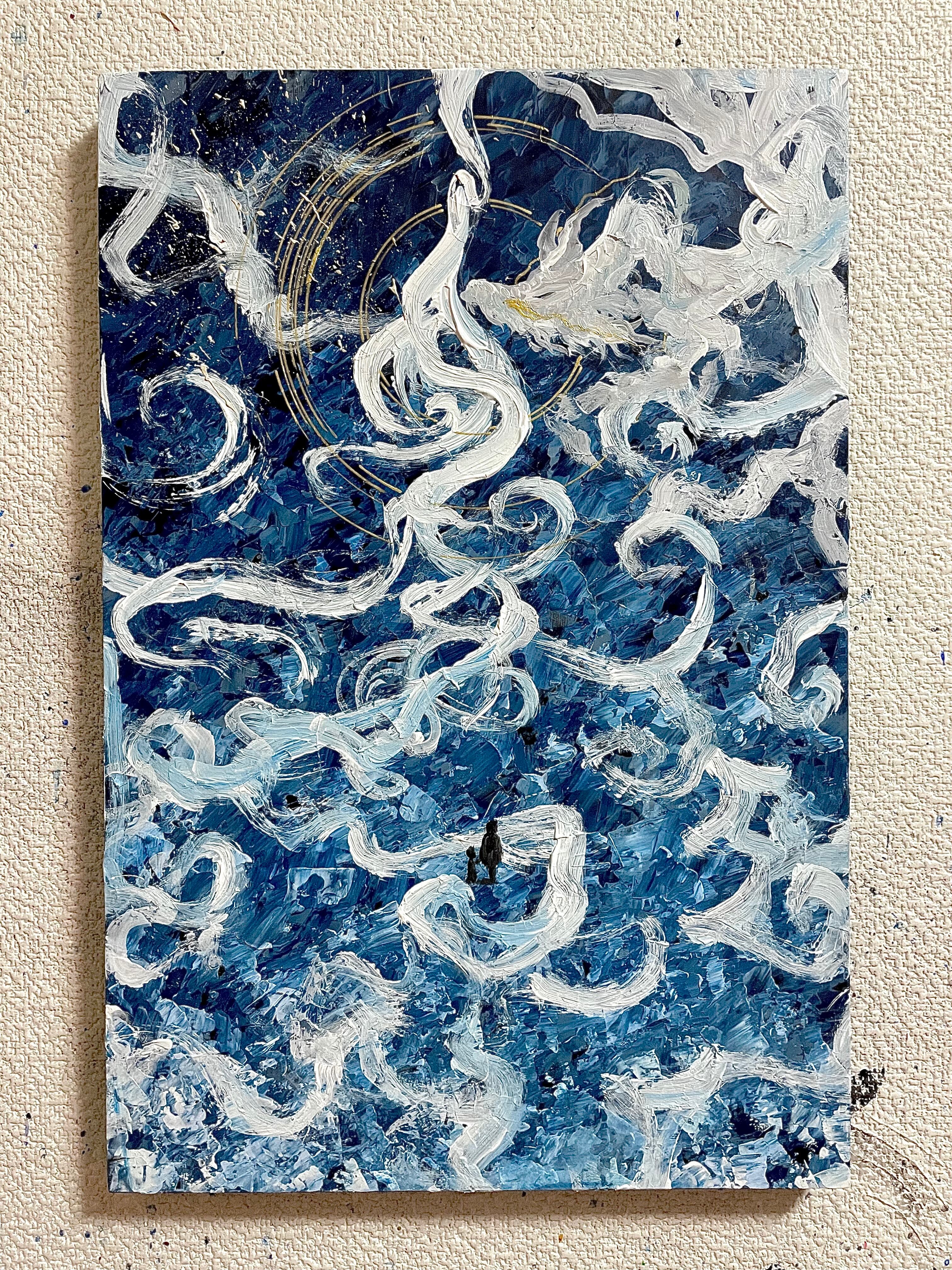 画材:木製パネル(シナ)、ジェッソ、アクリル絵の具